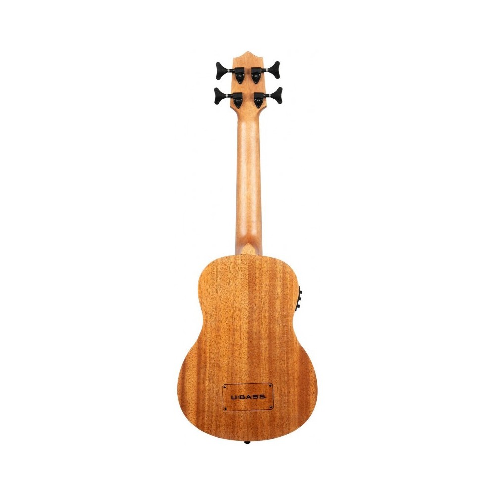 Ukelele fabricado completamente en caoba, Clavijas de afinación personalizadas negras fundidas a presión, haciéndole un diseño tipo bajo eléctrico, Electrónica U-Bass activa con cuerdas de goma, y al tener ese tamaño, sirve tanto para tocar el ukelele como para los bajistas que quieran practicar su istrumento y no tengan espacio suficiente para poder transportarlo. Incluye funda acolchada