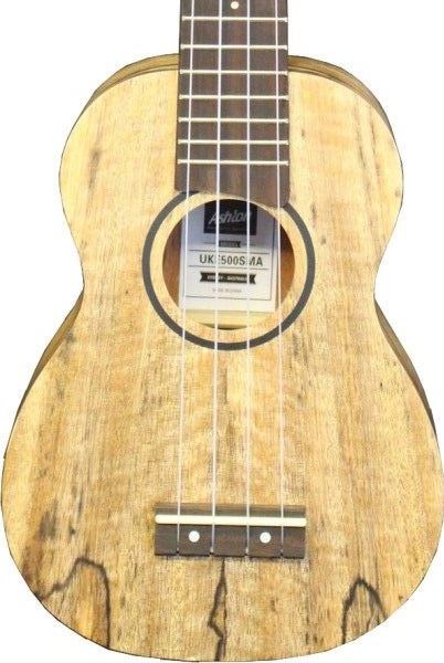 Ashton UKE 500 SMA es un ukelele soprano hecho de madera de mango. La tapa, los costados y el fondo también están hechos de mango. El diapasón y el puente están hechos de SmartWood, que es más resistente y duradero que el palisandro y también menos sensible a los cambios de temperatura y humedad. El hardware es niquelado. Viene equipado con cuerdas de nylon de calidad fabricadas por Aquila. Ukelele de tamaño soprano para quienes buscan un instrumento de calidad. Con una impresionante selección de ukeleles, que van desde los soprano estándar hasta un ukelele con opciones de preamplificador, versiones Solid Top premium y opciones de acabado de madera exótica, ¡Ashton tiene una gama que ofrece a todos su elección ideal para ukeleles! Siendo el más pequeño de los tamaños estándar de ukelele, el ukelele soprano Ashton está disponible en impresionantes variaciones de acabado natural de caoba o picea. Con el hardware Nickel Chrome para la afinación y las cuerdas Aquila adecuadas, se le puede garantizar una afinación estable y un mejor sonido. Con 12 trastes en la escala de 13.5 sintonizada a G, C, E y A, este cuerpo de Soprano de tamaño pequeño puede producir melodías melódicas con un sonido que no te decepcionará.
