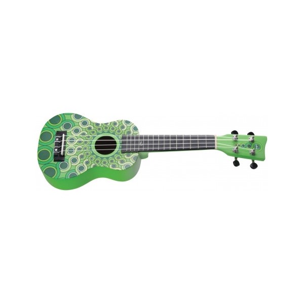 Estupendo ukelele para principiantes con un colorido espectacular y con un diseño divertido en mandala, fabricado en madera de tilo que lo hace más ligero, los clavijeros son abiertos, cromados. Si quieres empezar a tocar éste instrumento, éste modelo es el idea. lPosee un sonido muy agradable y sus cuatro cuerdas hacen que pueda aprender todo el mundo a tocar canciones en muy poco tiempo. Funda incluida