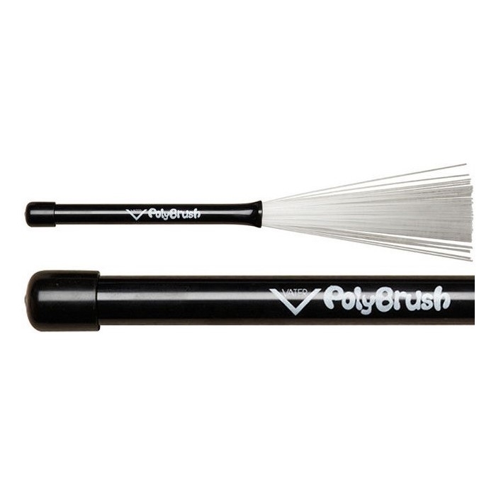 Escobilla con filamentos blancos. Es el modelo Whish de Vater. Sirve para producir un sonido diferente y curioso en su cajón o intrumento de percusión..