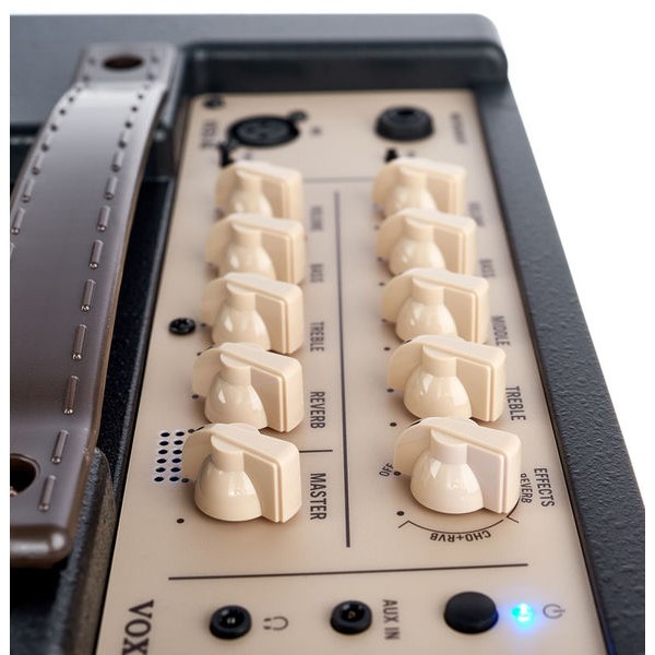 Amplificador combo para teclado y guitarr 50W de potencia. Esta hecho con un diseño ligera y compacta. Con un sonido cálido de válvula Nutube. Incluye un altavoz coaxial de 8 pulgadas que proporciona un sonido claro que se extiende hasta los agudos. Su estructura Bass Reflex, asegura una elevada potencia y una rica reproducción de graves. Tiene integrado tres canales con controles independientes de volumen, su ecualizador master de tres bandas para mayor flexibilidad de control del sonido. Entrada de CH3 que se puede conmutar entre Línea y Micro, y dispone de un conmutador PHASE. Una completa selección de conectores de entrada/salida que incluye AUX In, salida de Auriculares y LINE Out. Tiene unas dimensiones de 354 mm × 208mm × 313mm con un peso aproximado de 4.1 kg.