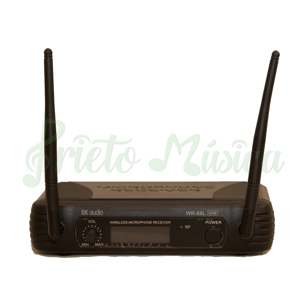 Pack Sistema inalámbrico con dos Micrófono de mano EK audio WR-69LH, Uno de los mejores en cómodidad y en efectividad, con un precio asequible para que no pueda faltar en sus clases o conferéncias. Contiene un emisor, portátil, ligero y compacto, en él tiene que ir enchufado con el micrófono HT-218, el cual va incluido en el pack; y un receptor, más pesado, pero no hará falta moverlo, ya que su función es estar en un sitio fijo, reproduciendo lo recibido por eel emisor.