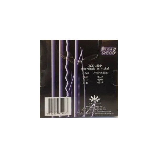Juego de cuerdas para guitarra eléctrica de Jimmy Wess. Estas cuerdas de inoxidables tienen un calibre de 008p 011p 014p 022w 030w 038w