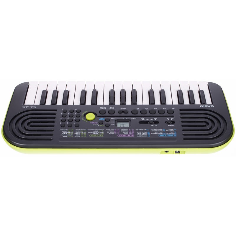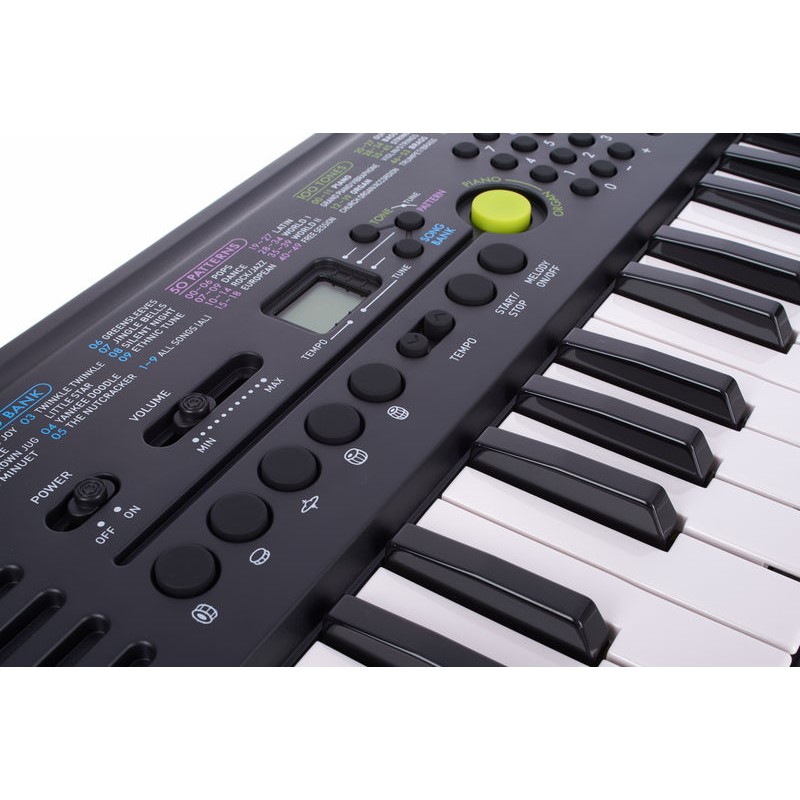Mini Teclado de 32 teclas pequeñas, este mini piano cuenta con 8 polifonía, tambien incluye 100 tipos de sonidos y 50 estilos diferentes. Se le pueden conectar unos auriculares para no molestar o para evitar los sonidos molestos externos.